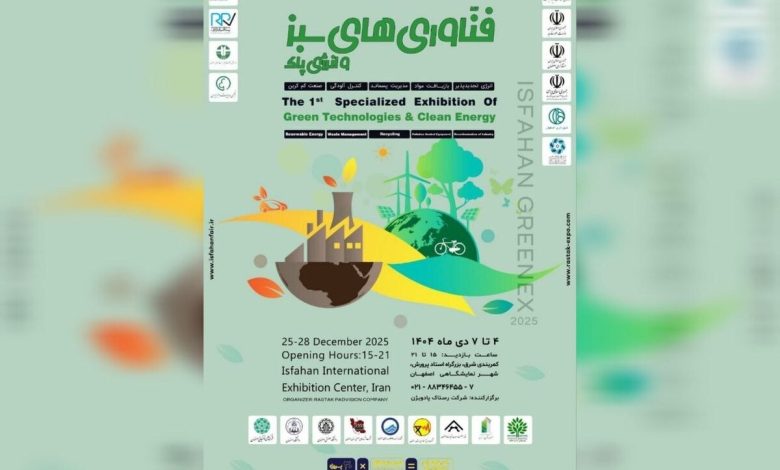 اولین نمایشگاه تخصصی فناوری های سبز و انرژی پاک از ۴ تا ۷ دی ماه ۱۴۰۴، همه روزه از ساعت ۱۵ تا ۲۱ در محل دائمی نمایشگاه های بین المللی اصفهان برگزار می شود و میزبان علاقه مندان، متخصصان و فعالان حوزه محیط زیست، انرژی و صنعت خواهد بود.